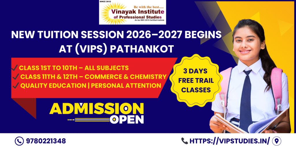 The new academic session 2026–2027 has officially started at Vinayak Institute of Professional Studies (VIPS) Pathankot, and admissions are now open for students who wish to strengthen their academic foundation and achieve excellent results. VIPS is proud to offer result-oriented tuition classes from 1st to 10th for all subjects. We also profile tuition for Class […]