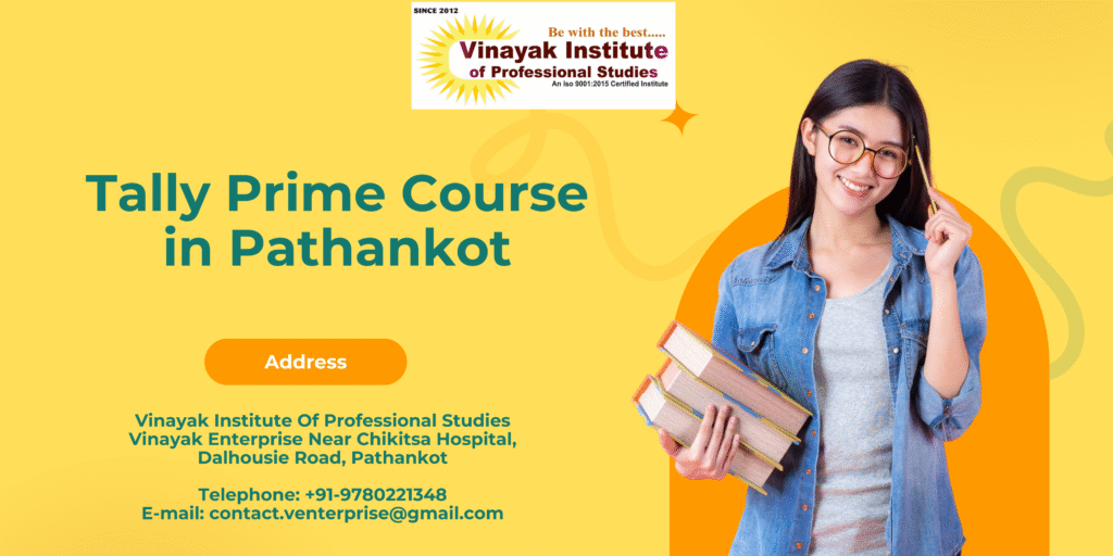 Vinayak institute of professional studies is the institute in Pathankot for tally courses . VIP studies provide all types of computer courses also. A Tally Prime course is a practical computer course that teaches students how to use Tally Prime software for accounting, finance, and business management. Tally Prime is widely used by businesses, shops, companies, and accountants to manage their day-to-day financial work. If you are interested to learn tally prime in Pathankot, so join vinayak institute of professional studies. Join now for best knowledge of Tally Prime.
